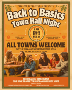 Join neighbours and community members for a welcoming, community focused evening about restoring common sense, local voices, and respect for property rights.